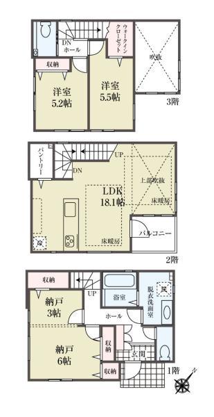 ・リビング・ダイニングに床暖房(2面)あります。
