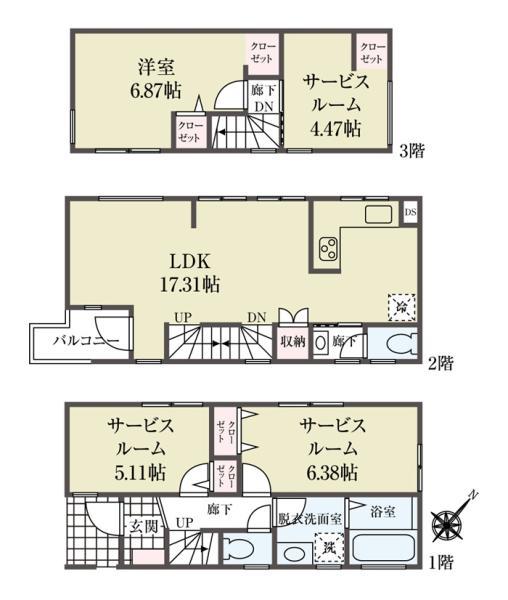 | 間取り | 1LDK+3S |