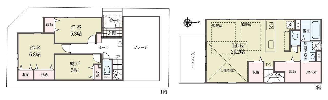 | 建物面積 | 116.96m2(35.38坪) うち1F車庫 面積:17.39m2 | ||