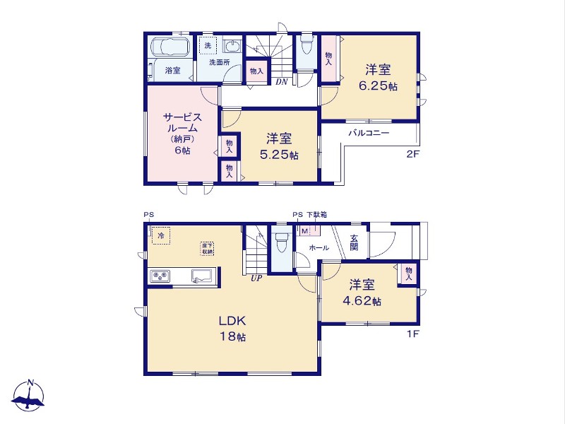 ・LDK18帖の2階建て3LDK+Sの新築戸建て