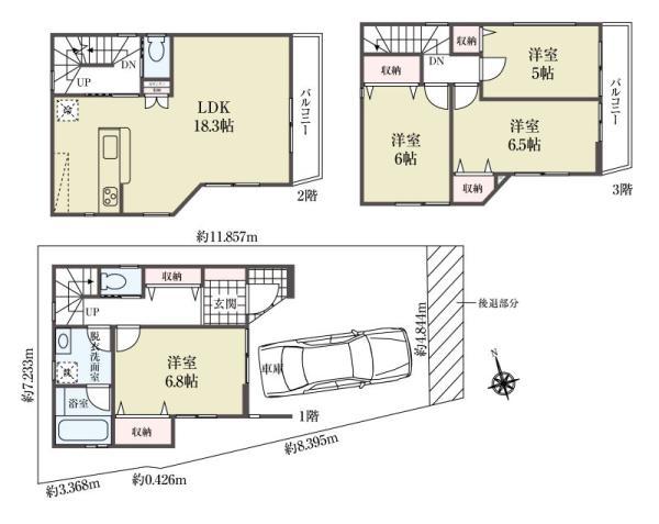 | 土地面積 | 73.45m2(22.21坪) セットバック | ||