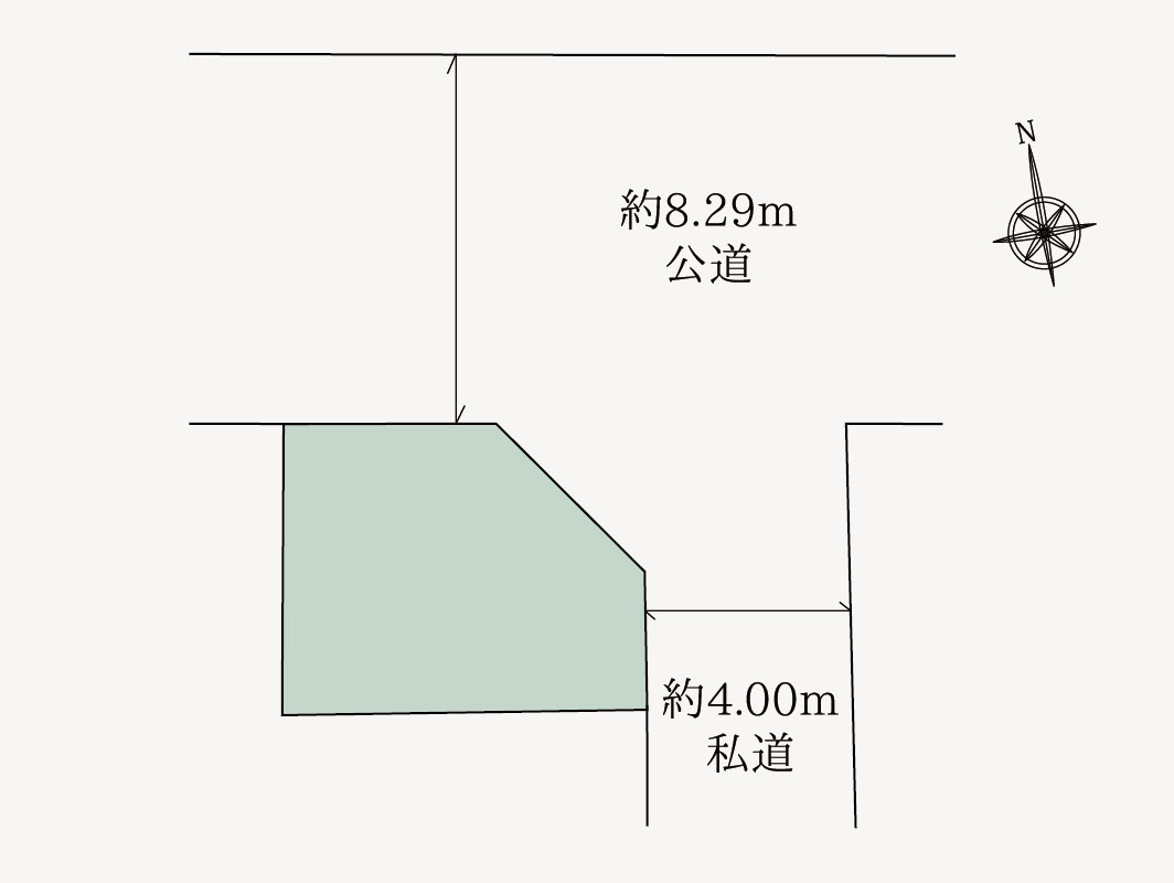 | 接道 | 北側 8.29m 公道 東側 4.00m 私道 |
