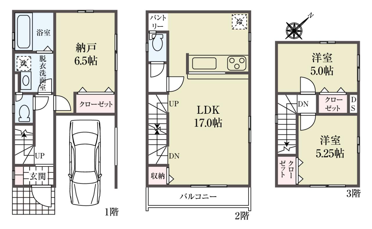 | 建物面積 | 95.88m2(29坪) うち1F車庫 面積:11.01m2 |