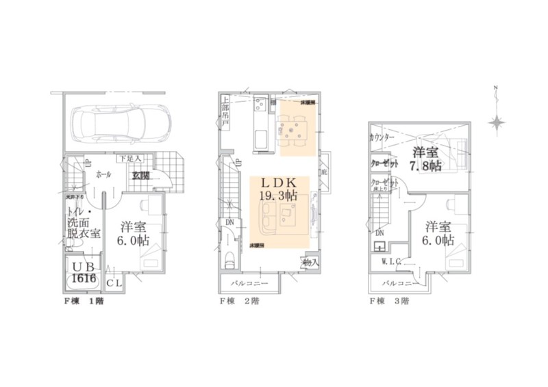 | 土地面積 | 64.04m2(19.37坪) セットバック済 | ||
