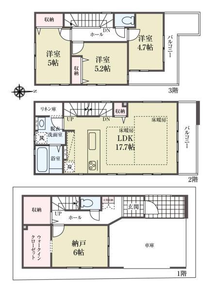 寒い季節に嬉しい床暖房、家事の時短に食洗機、大型WICや脱衣所収納やファミリークロークなど、充実した設備!