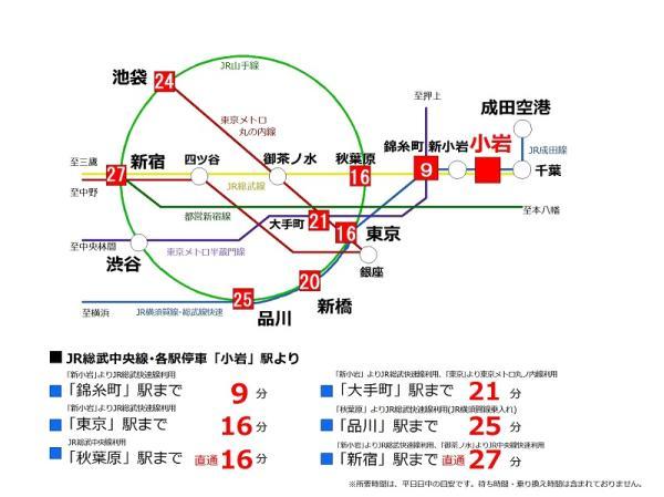 | 沿線・駅 | JR中央・総武線小岩駅 徒歩18分 京成押上線京成立石駅 徒歩23分 京成本線京成小岩駅 徒歩25分 |