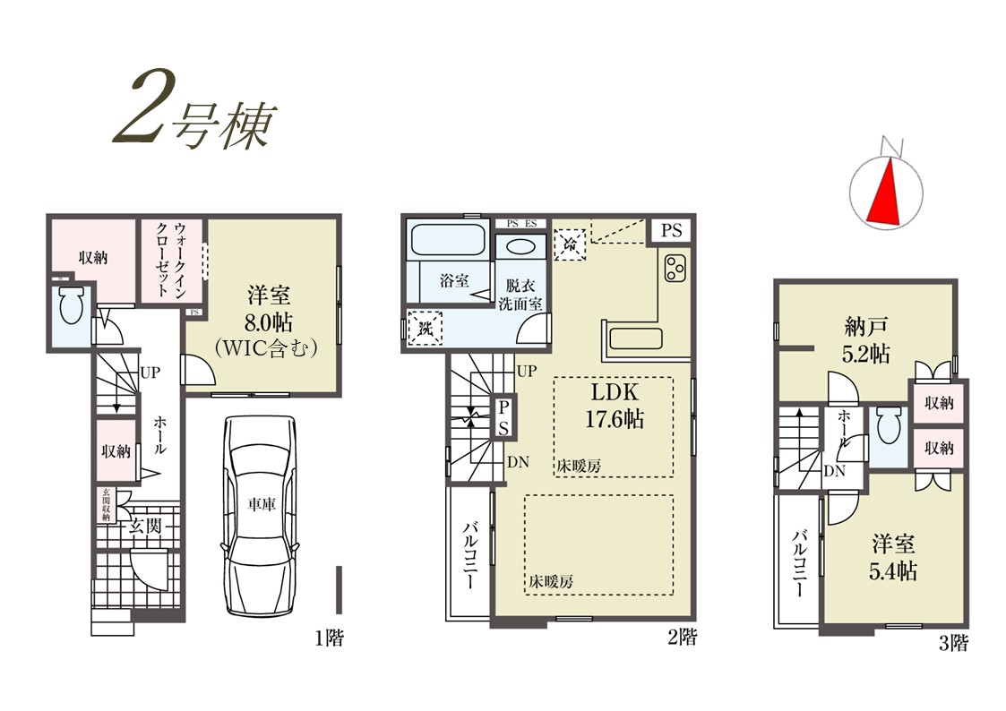 | 建物面積 | 108.89m2(32.93坪) うち1F車庫 面積:14.49m2 | ||