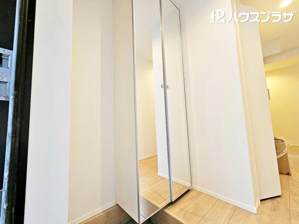 ・玄関収納は全面鏡で外出時の身だしなみチェックができます