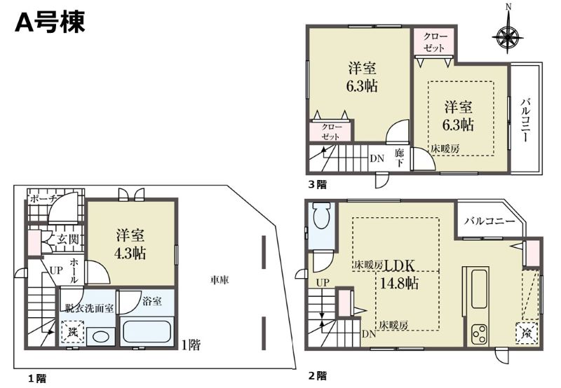 | 建物面積 | 84.75m2(25.63坪) うち1F車庫 面積:10.78m2 | ||