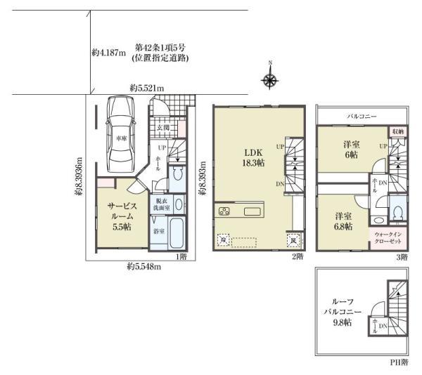 | 土地面積 | 46.46m2(14.05坪) セットバック | ||