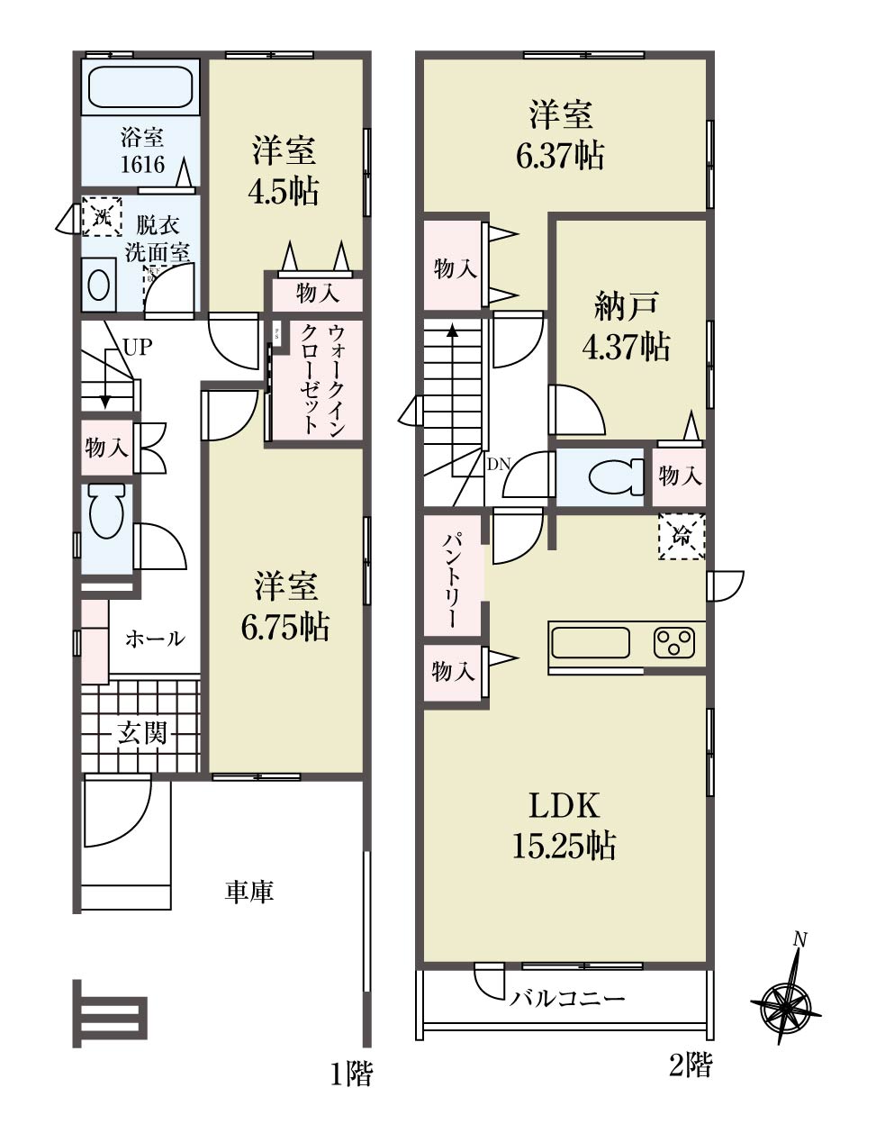 ・各お部屋の広さは十分に確保しており、収納スペースは充実