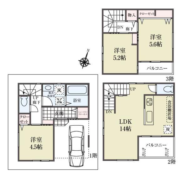 | 建物面積 | 83.83m2(25.35坪) うち1F車庫 面積:5.38m2 |
