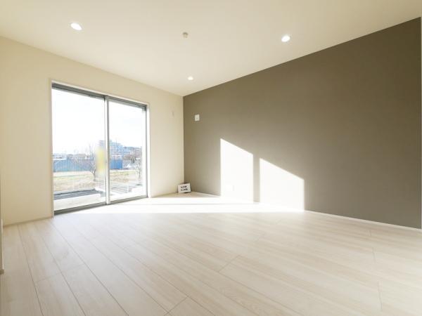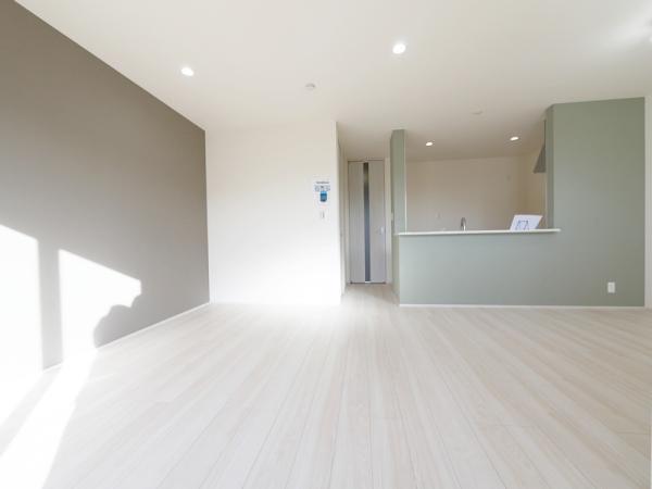 ・ 家族が集まるLDKは、アクセントクロスとダウンライトでお洒落な空間を演出しています。