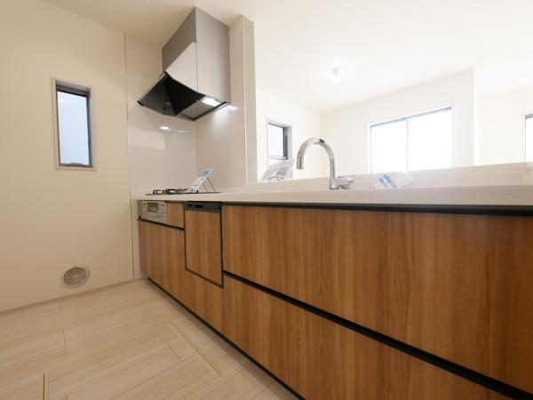 ・食洗機、タッチレス水栓、ハイグラニット天板など、高性能な「家事ラク仕様」が標準装備です。