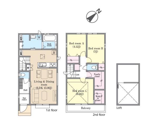 高い建物が少なく開放感のある閑静な住宅地に収納豊富な2階建てが誕生します。周辺環境も子育て中のファミリーにおすすめしたい環境となっております。収納に関してはウォークインクローゼット、ファミリークローゼット、ロフト等の利用目的に合わせて多彩な収納スペースがございます。またA,B号棟ともに主寝室にロフトがあります。収納だけではなく縦空間のおくゆきを感じられることでしょう。建物設備・仕様をモデルハウスにてご確認できます。ぜひ一度見学してみてはいかがでしょうか?今から建物完成が楽しみです。