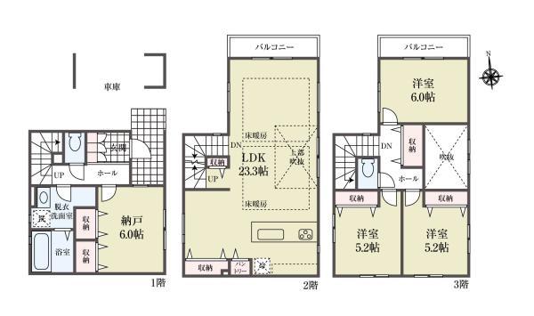 | 建物面積 | 127.36m2(38.52坪) うち1F車庫 面積:8.63m2 | ||
