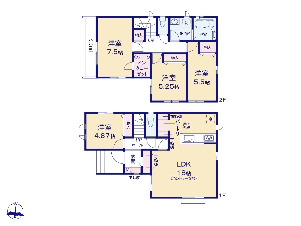 ・玄関にはシューズインクローゼット、主寝室となる7.5帖のお部屋にはウォークインクローゼットもついている為、収納豊富な物件です