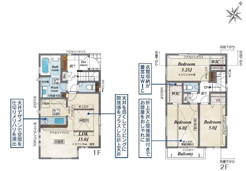 ・各部屋5帖以上のお部屋にクローゼット付き