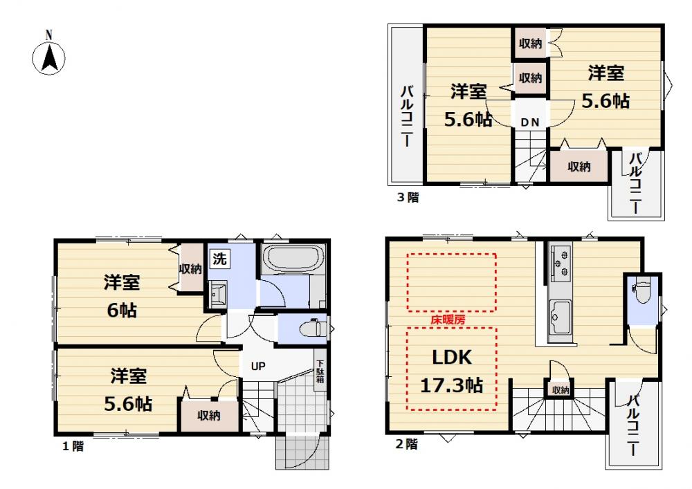3000万円台前半ながら、LDK・各居室共に十分広さのとれた4LDKの美築中古戸建て。