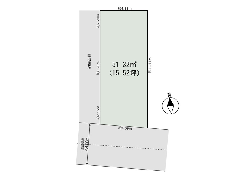 | 土地面積 | 51.32m2(15.52坪) セットバック不要 | ||