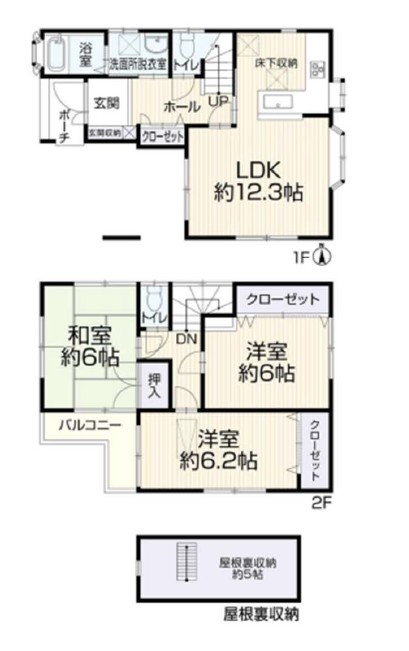 ・屋根裏収納は約5帖もあります。