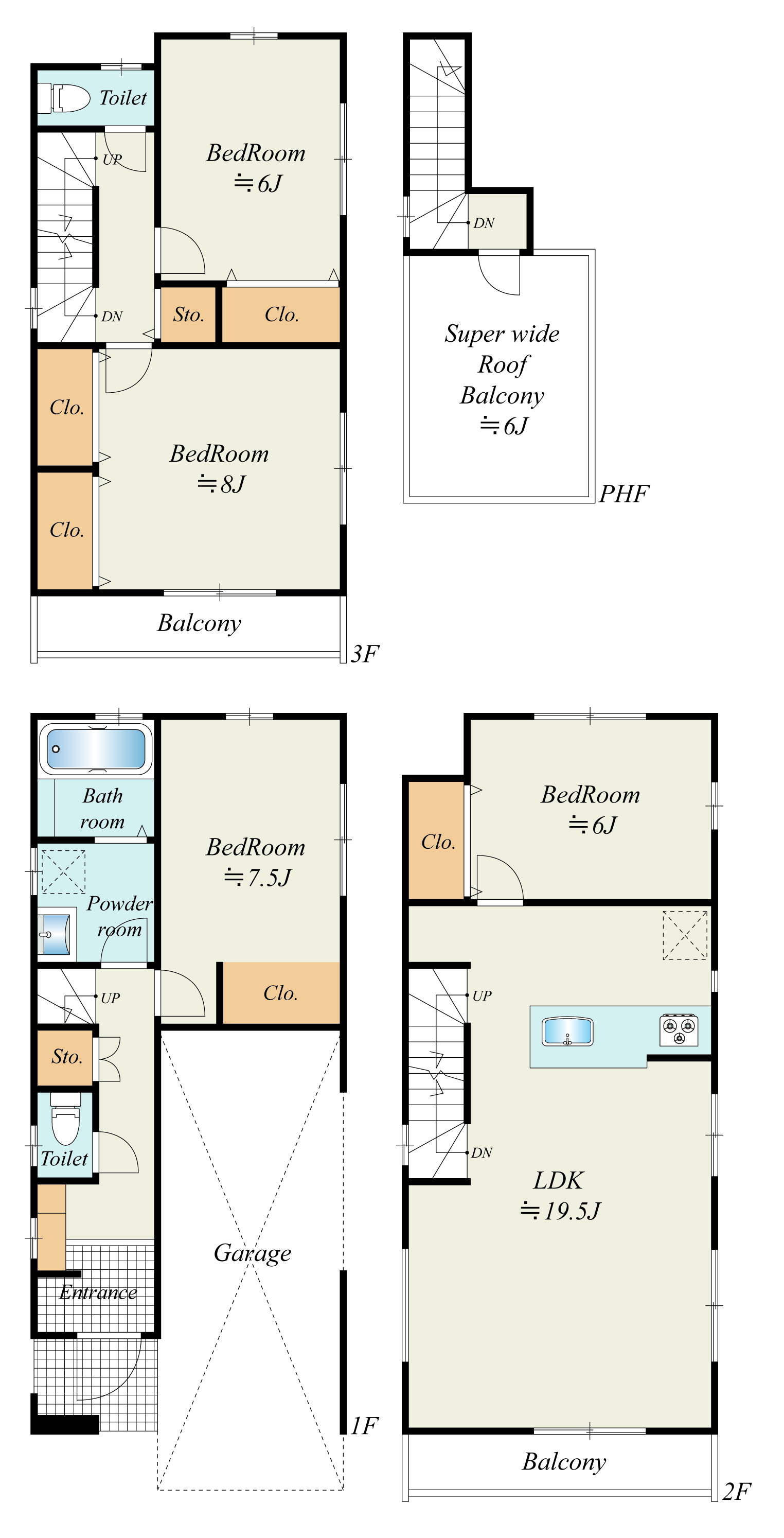 | 建物面積 | 136.29m2(41.22坪) うち1F車庫 面積:18.22m2 |