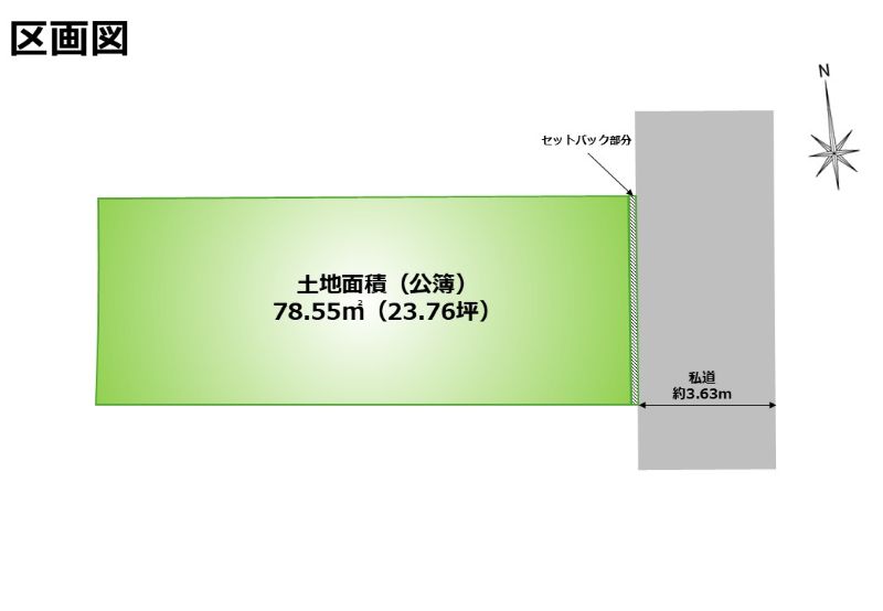 | 土地面積 | 78.55m2(23.76坪) セットバック要(1.03m²) | ||