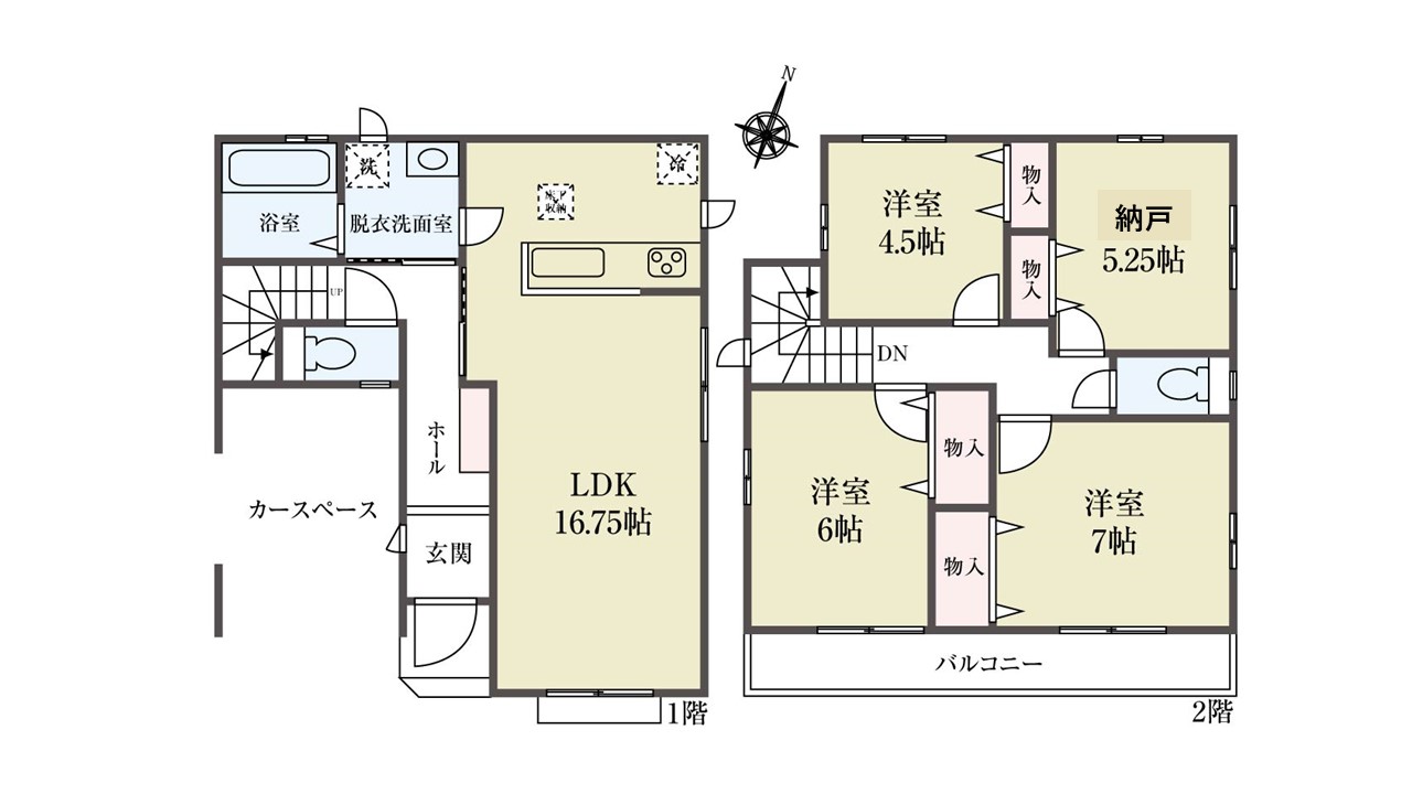 | 建物面積 | 96.25m2(29.11坪) うち1F車庫 面積:12.42m2 | 間取り | 3SLDK |