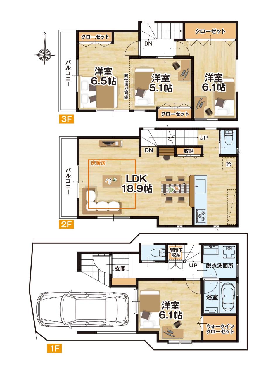 | 建物面積 | 115.91m2(35.06坪) うち1F車庫 面積:9.11m2 | 間取り | 4LDK |