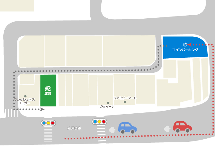 指定駐車場が満車の場合は、スタッフまたは店舗までご連絡ください。