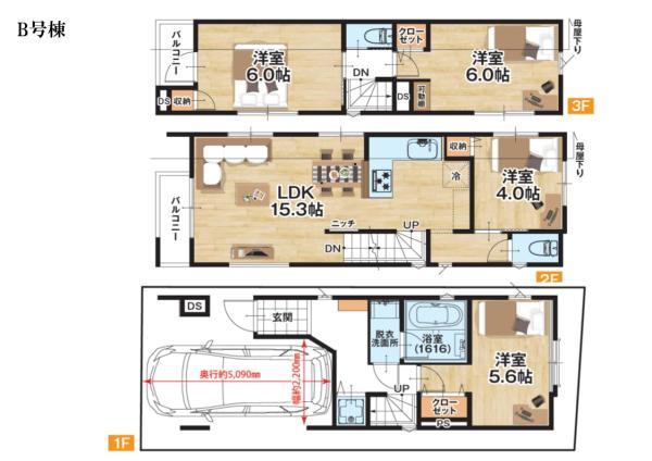 土地面積 | 50.98m2(15.42坪)~52.01m2(15.73坪) |